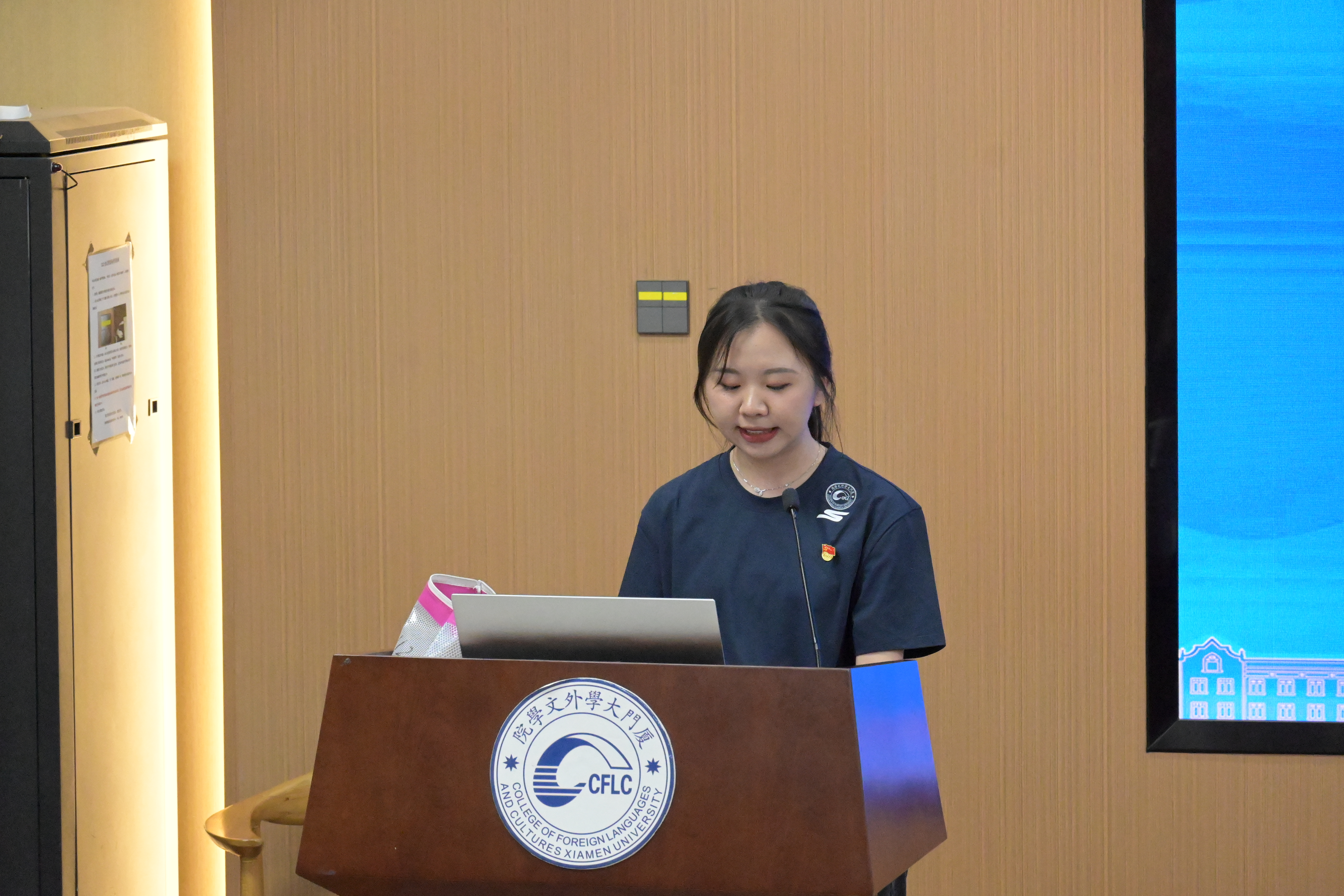 2021级英语口译专业硕士陈楠作为优秀队员代表发言。陈楠在发言中分享了警局口译的经历和感悟,用实际案例阐释基础口译能力、临场观察感受能力和沟通能力的重要性,为新一期的外语助理们提供了宝贵的经验。最后,她代表全体警务外语助理感谢厦门市公安局出入境管理局与学院共同搭建的实践平台,鼓励新一期的警务外语助理砥砺奋进,不负使命和责任。