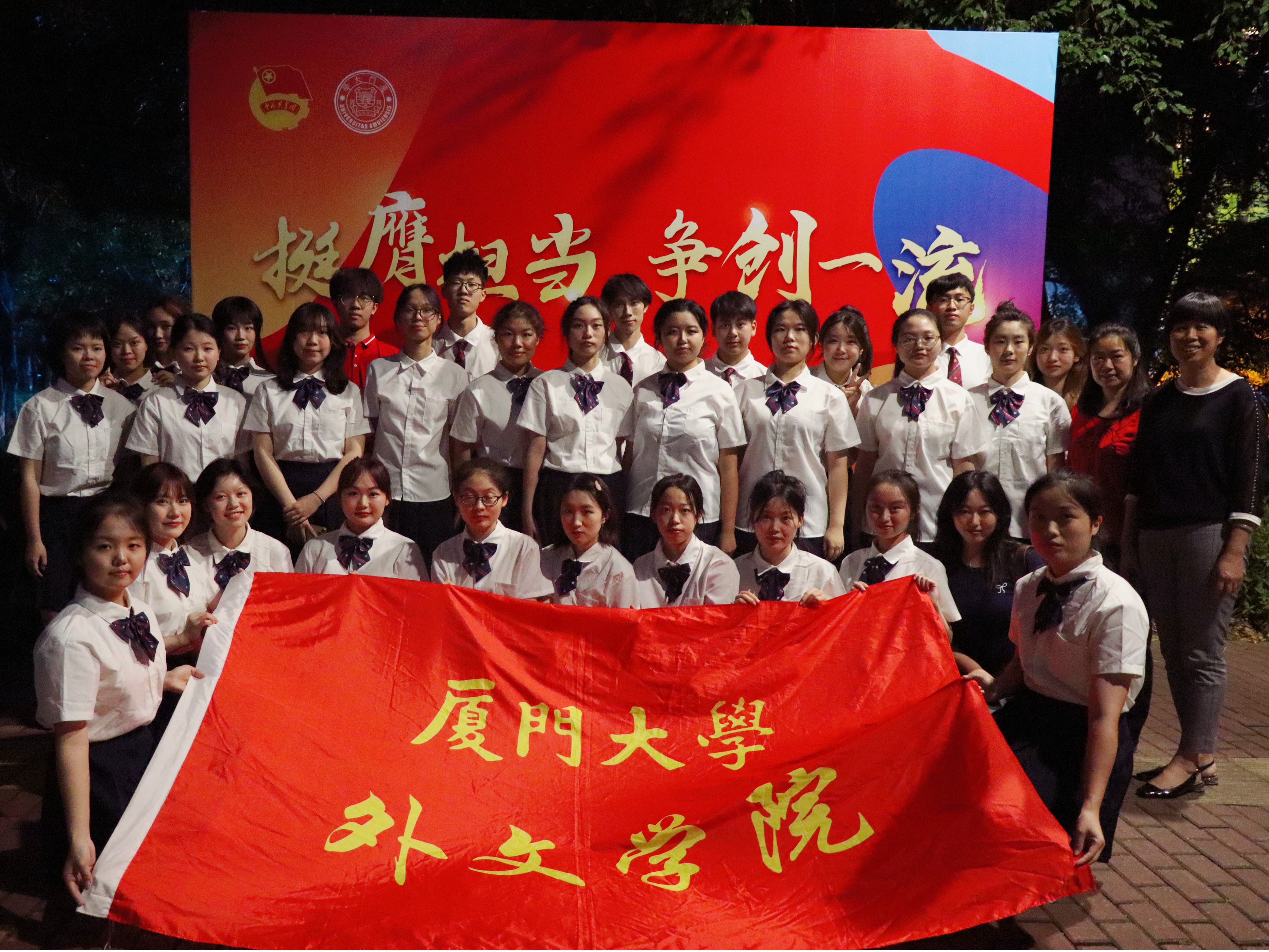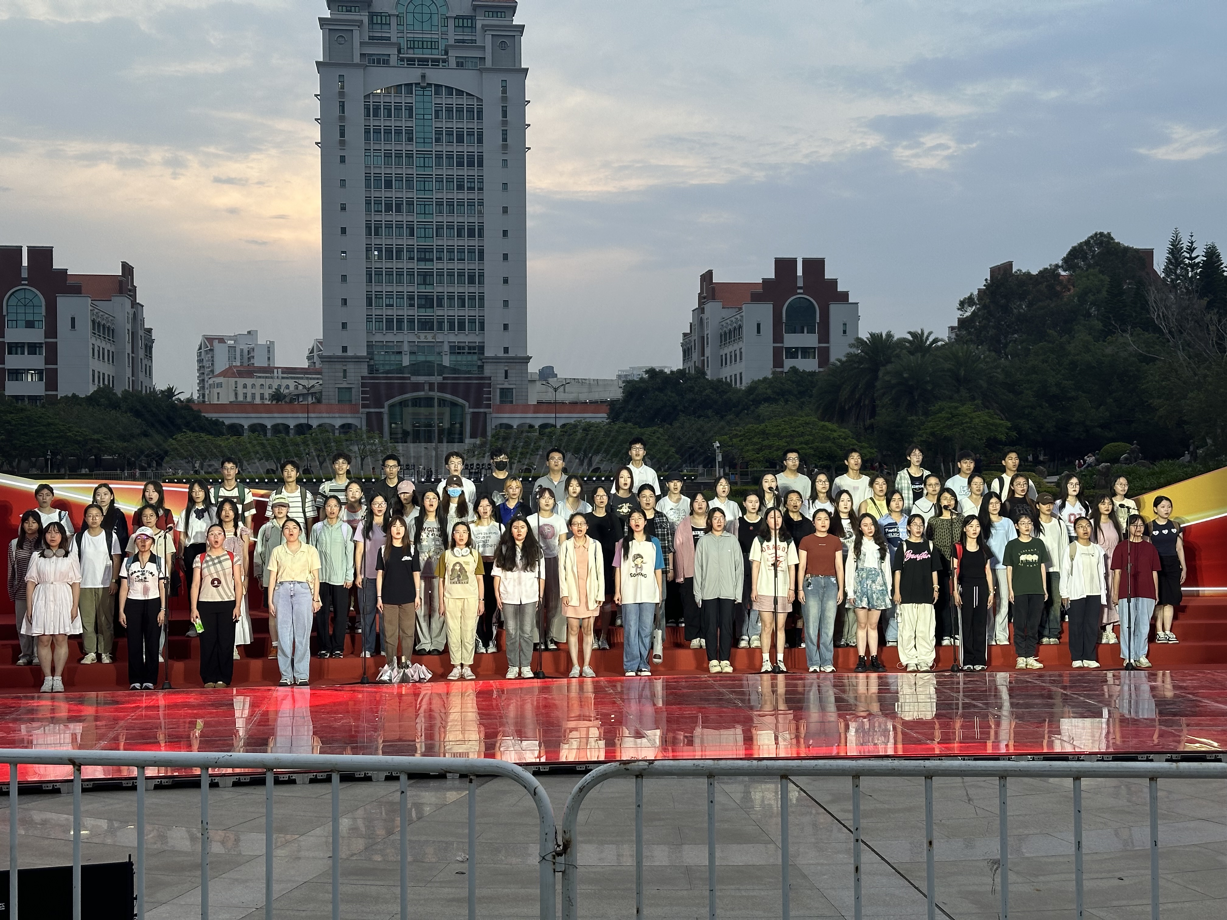 为深入学习贯彻习近平总书记对全国广大青年寄语精神,传承弘扬嘉庚精神,5月19日晚,“挺膺担当,争创一流”厦门大学第十一届校园合唱节在思明校区芙蓉湖畔举行,来自全校33个院系的1000余名同学参与其中。外文学院合唱团以动人的歌声展现青春力量,表达了当代青年对时代的美好祝福。