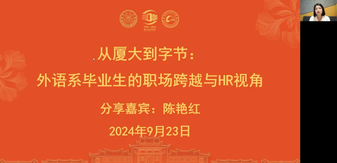 本学期伊始,学院进一步加强谋划,持续推进“院友朋辈导师”计划。9月23日,第三期“院友朋辈导师”沙龙在德贞楼112报告厅举办,邀请了2010届英语专业陈艳红院友为同学们作分享,沙龙由学院团委副书记戴晓燕主持。
