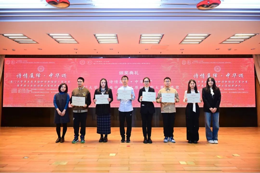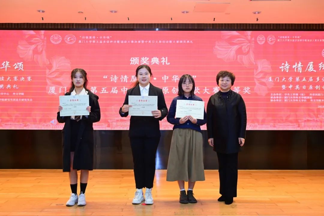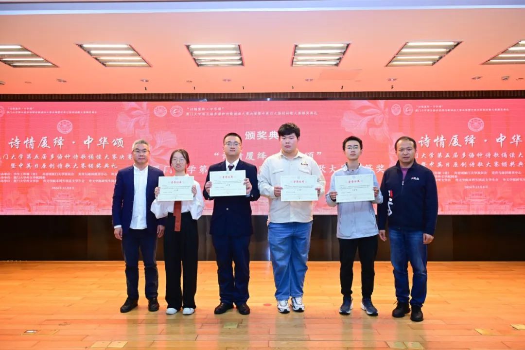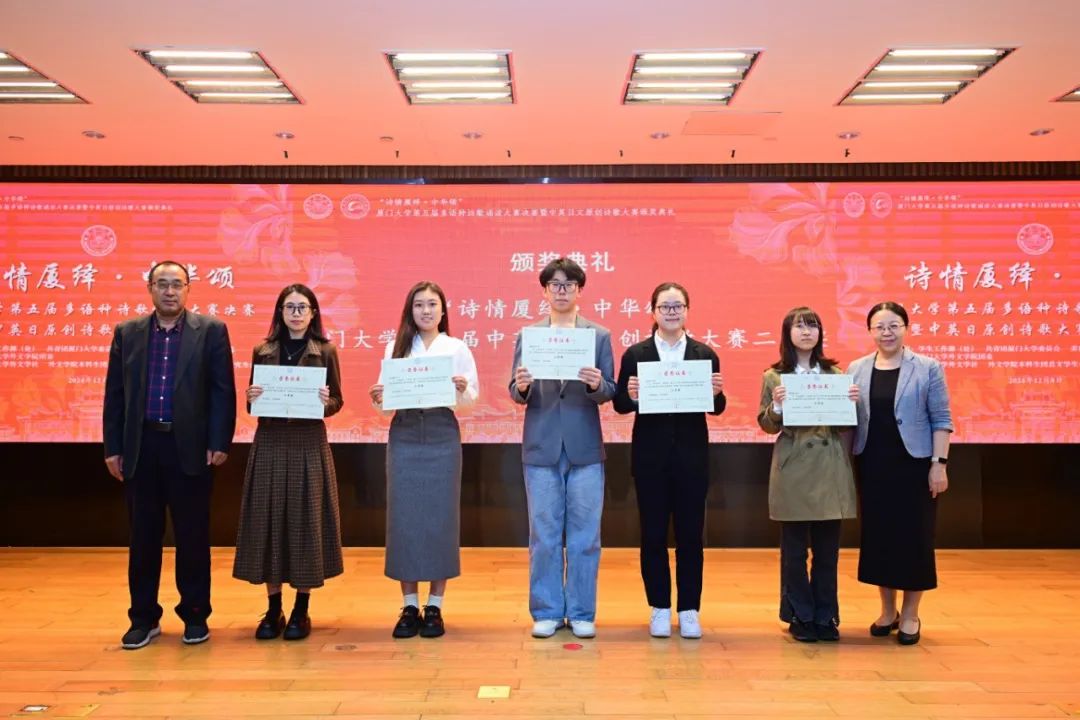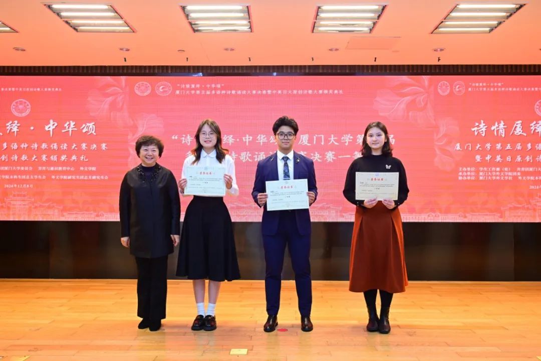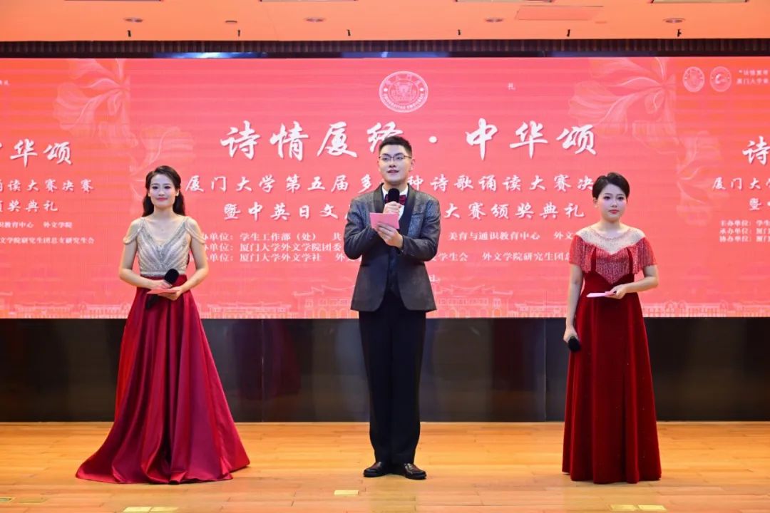 在热烈的气氛中,“诗情厦绎·中华颂”厦门大学第五届多语种诵读大赛决赛暨中英日文原创诗歌大赛圆满落幕。此次比赛是一场文字与声音的盛宴,不仅传递了中华文化之美,也展现了青年学子对经典的深情演绎,期待今后有更多同学踊跃加入这场文化盛会,共同书写属于当代青年的诗意篇章!