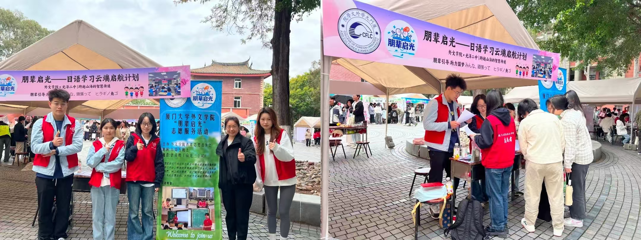 在主题游园活动中,学院青年志愿者协会的骨干们精神饱满地向全校师生展示和推广“‘朋辈启光’——日语学习云端启航计划”特色志愿服务项目。该项目是学院积极响应学校挂钩帮扶光泽县的行动号召,为光泽县中学生量身打造的高质量语言学习平台,帮助中学生提高日语水平,拓宽国际视野、树立远大理想。活动现场,还精心策划一系列趣味小游戏,准备了精美小礼品,吸引了众多师生踊跃参与。此次游园活动不仅大力推广了学院的特色志愿服务项目,还进一步激发了同学们投身志愿活动的热情。