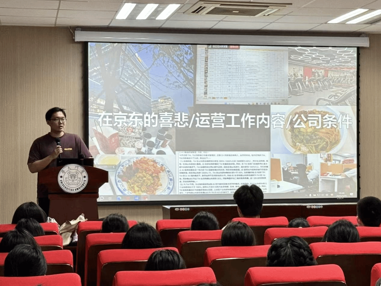 辛小宇以大二暑期拿到三个大厂offer的成功案例,为同学们详细拆解了简历打造、实习经历和职业规划等关键问题。他结合自身在互联网行业的实习经历,告诉同学们:“互联网领域包容性强,不必过度焦虑背景问题,重要的是展现你的商业思维和可迁移技能。”他建议大家提升软实力,在简历中突出自身优势,并强调“实习和年级无关,想做就去行动!”