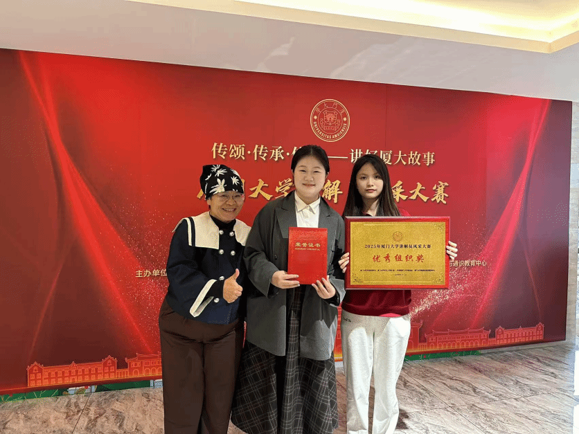 4月12日,2025年厦门大学讲解员风采大赛总决赛在思明校区克立楼3楼报告厅落下帷幕。我院2024级英语专业的汪舒韩同学凭借出色表现,荣获大赛三等奖,学院获优秀组织奖。