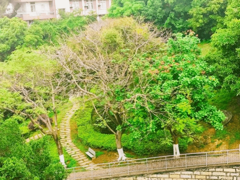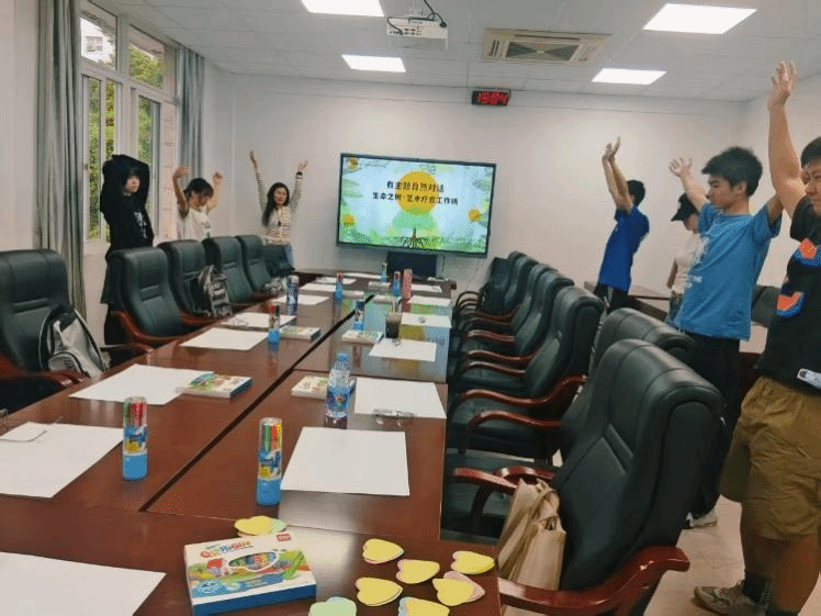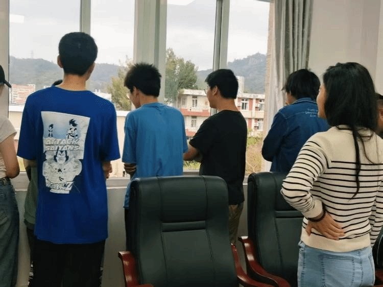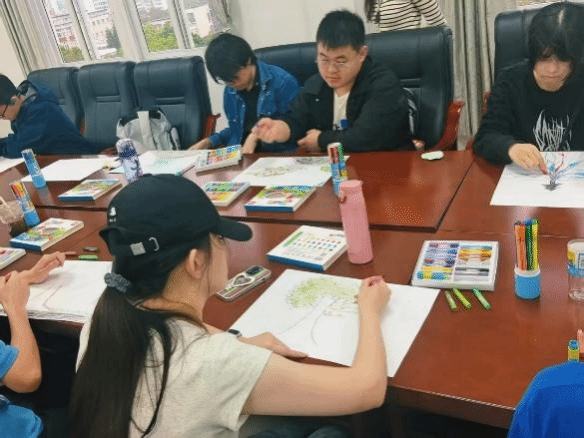 丁老师邀请大家向窗外眺望,去挑选一颗“顺眼”的树,并感受“树有呼吸,树有情绪,树有性格”,在丁老师的引导下,鸟瞰视野下的树仿佛触手可及,好似树的脉搏也正在眼前跳动着。她强调,观树不应只眼中有树,还要在意树的生长,树的环境,阳光明媚吗,土壤松软吗……恰在此时,有园林师傅修剪灌木,嘈杂声远远传来,“树木是否也会有些许烦躁呢?”,丁老师在观树最后的提问,得到了同学们一致肯定的回答,同学们沉浸在与自然的对话之中。活动中,丁老师将观树与“自爱教育”结合,鼓励学生通过观察树木本身及其生存环境,反思自身情绪与外界压力的互动,树木的成长是接纳与适应,接纳自身的不完美,适应环境的不尽如意,自爱也应如此。