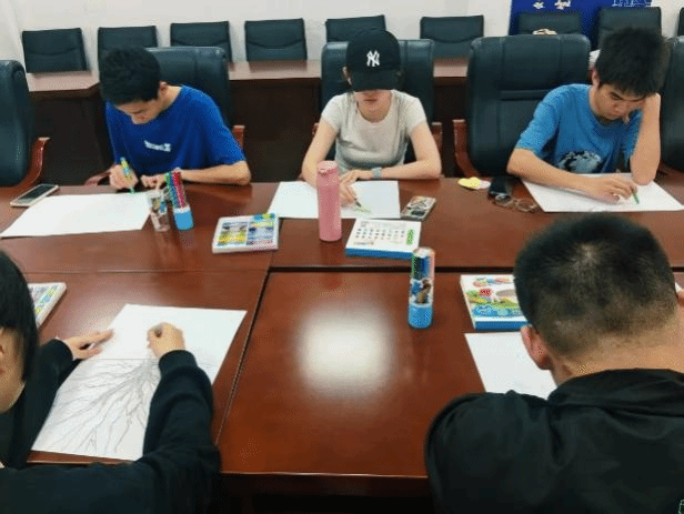 “去把刚刚你们生长的那颗树尽情画出来”,在丁老师的鼓励下,同学们开始绘画出自己心中的大树。不绝于耳的纸笔摩擦的沙沙声,画树根、画枝干、画树叶、画果实,同学们走心地绘着,“问你的‘生命之树’感觉如何,问它喜欢什么样的环境,问它想要什么作伴,问它将会成长为何样”,丁老师源源地问着。色彩不一,或艳丽或质朴,形状多变,或纤细或舒张,同学们不停完善着自己的“杰作”,将刚刚的体会注入,将自我投射,同时在一旁用便利贴写下对丁老师问题的回答。