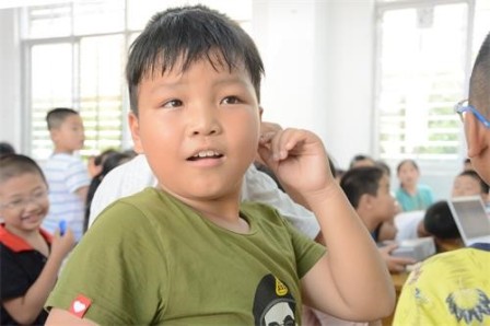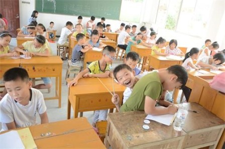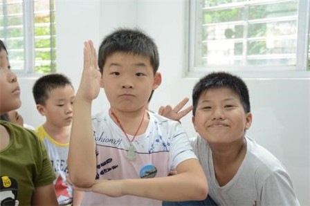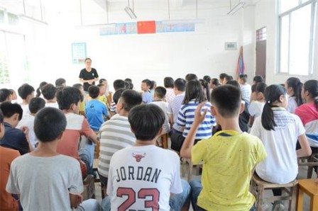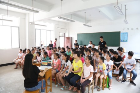 清晨,明媚的阳光悄然照进安静的校园,穿过绿树,在操场上倒映出浅浅的光影。这是厦门大学外文学院“英言厦语•快乐心象”暑期社会实践队来到山区的第四天,支教的小老师们和可爱的同学们早已相互熟悉认识,打成一片。上午,孩子们翘首期盼已久的英美日三国文化课终于到来。老师们将圣诞节、感恩节的美丽故事娓娓道来,用生动的语言讲述了寿司、动漫、和服与建筑等日本文化。同学们坐在台下,开心地歌唱着圣诞歌,聚精会神地聆听着迷人的异域文化知识。透过的知识的窗口,童稚的心灵对大山之外的世界有了自己全新的认识与期待。 下午,实践队队员为同学们精心准备了关于社会主义核心价值观的宣讲。首先,实践队队员组织同学们观看了主题为社会主义核心价值观的“二十四字歌”宣传视频。随后,实践队临时党支部宣传委员祖琳为孩子们讲解了核心价值观的内涵及内容。她用简明易懂的方式向孩子们解释了核心价值观的内容:核心价值观分为三个层面(国家,社会及公民),总共包含了二十四字的内容(富强民主,文明和谐,自由平等,公正法治,爱国敬业,诚信友善)。为了使孩子们能更快地理解核心价值观的内容,队员们还为孩子们播放了关于社会主义核心价值观的公益广告。视频播放过程中,孩子们都非常积极地跟读视频中出现的内容,也非常热烈地讨论视频中的“和为贵”、“孝当先”等口号。在视频结束后,队员根据视频内容向孩子们提问,孩子们都准确地答出了每个层面的具体核心价值观内容,赢得了在场队员们的掌声。 在接下来的创意画图环节中,实践队的队员们将小朋友们两两分组,让他们在十二个核心价值观中任意挑选一个词并在白纸上画出自己对所选词语的理解与看法。孩子们用画笔将自己对核心价值观的理解画在纸上,童稚的笔触以全新的方式诠释了核心价值观的内容。随后的听歌识曲环节里,孩子们通过听取歌曲片段,猜出歌曲名字。几轮的流行歌、儿歌与红歌猜曲中,孩子们几乎都猜出了歌名,也不由得露出了灿烂的笑容。 随后,核心价值观活动转移到室外进行,“核心价值观的抱团”、“松鼠与松树”、“接力跑与回答问题”等活动,将核心价值观内容巧妙地融合入游戏设计,让孩子们在欢乐的气氛中巩固了核心价值观的知识。 在今天下午的核心价值观系列活动中,孩子们都积极参与,表现良好。相信通过寓教于乐的方式,孩子们都能掌握并且遵守核心价值观的基本要求,实践队的老师与孩子们的情谊也能借此进一步加深。  小朋友们认真听讲