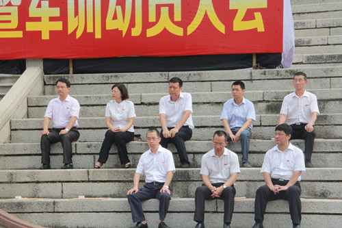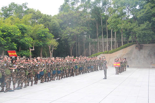 校党委副书记林东伟为军训团授旗