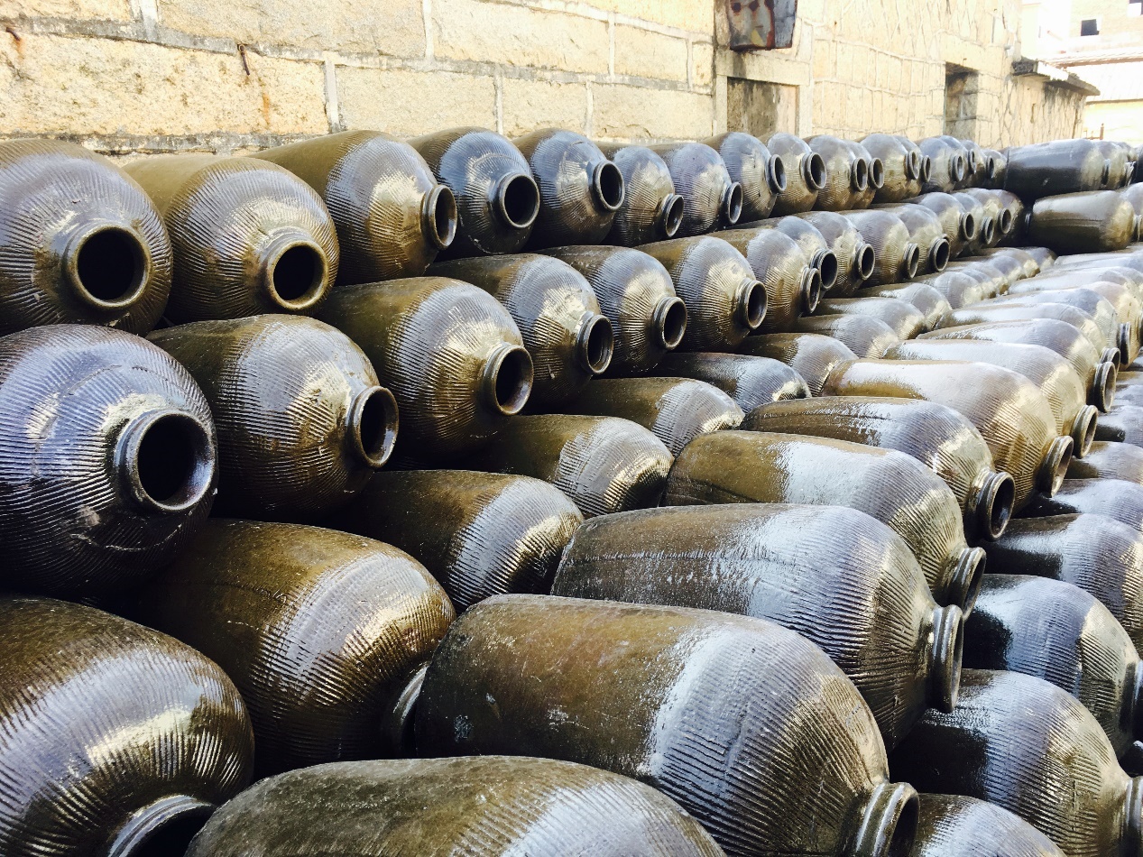 一进酒厂大门,首先映入眼帘的是一排充满历史沧桑感的酒坛。酒厂技术骨干黄志雄师傅介绍道,华侨酿酒厂前身是生产酒糟的小作坊,后逐渐发展壮大为独立酒厂。