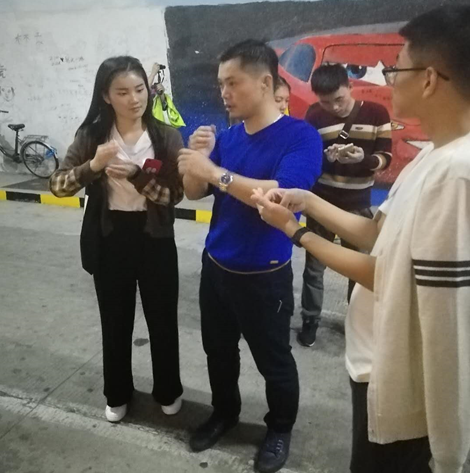 热情的聋人中有一位穿橘色衣服的奶奶给很多同学都留下了深刻的印象。奶奶和同学们交流时一直强调要使用自然手语,打手语时表情尤其重要。她还不时在本子上写字,不厌其烦地教同学们手语新词,让大家十分感动。参加活动的聋人中有一位从北方来的学设计的姐姐,随着丈夫来到厦门,现在是一名淘宝客服。此外,一位热情阳光的幼儿园教师也和她的聋人朋友一同来到厦大,她有很强的口语表达能力,需要时主动帮助同学们理解手语并准确表达。