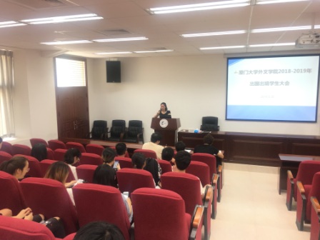为保证我院学生出国出境交流交换工作的顺利实施,525日中午,学院在德贞楼112报告厅召开2018-2019学年出国出境学生大会。学院团委副书记、2016级本科生辅导员戴晓燕老师,2016级本科生兼职辅导员谢定云老师、孙宇老师出席本次大会,70余名将于下一学年出国出境交流的2016级本科生和2017级研究生参加了本次大会。大会由戴晓燕老师主持。