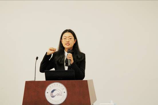 “绿色厦途”实践队代表左彩凤同学分享经验