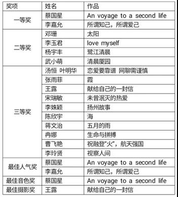 选手们在比赛中的精彩创作为大家增添了治愈心灵的力量。最终,蔡国星、李嘉允两位同学获一等奖,邓珊等四位同学获得二等奖,汤恒、叶明华等十人获三等奖,此外,比赛评选出了最佳人气奖蔡国星、李嘉允,最佳音色奖蔡国星,最佳摄影奖王露。