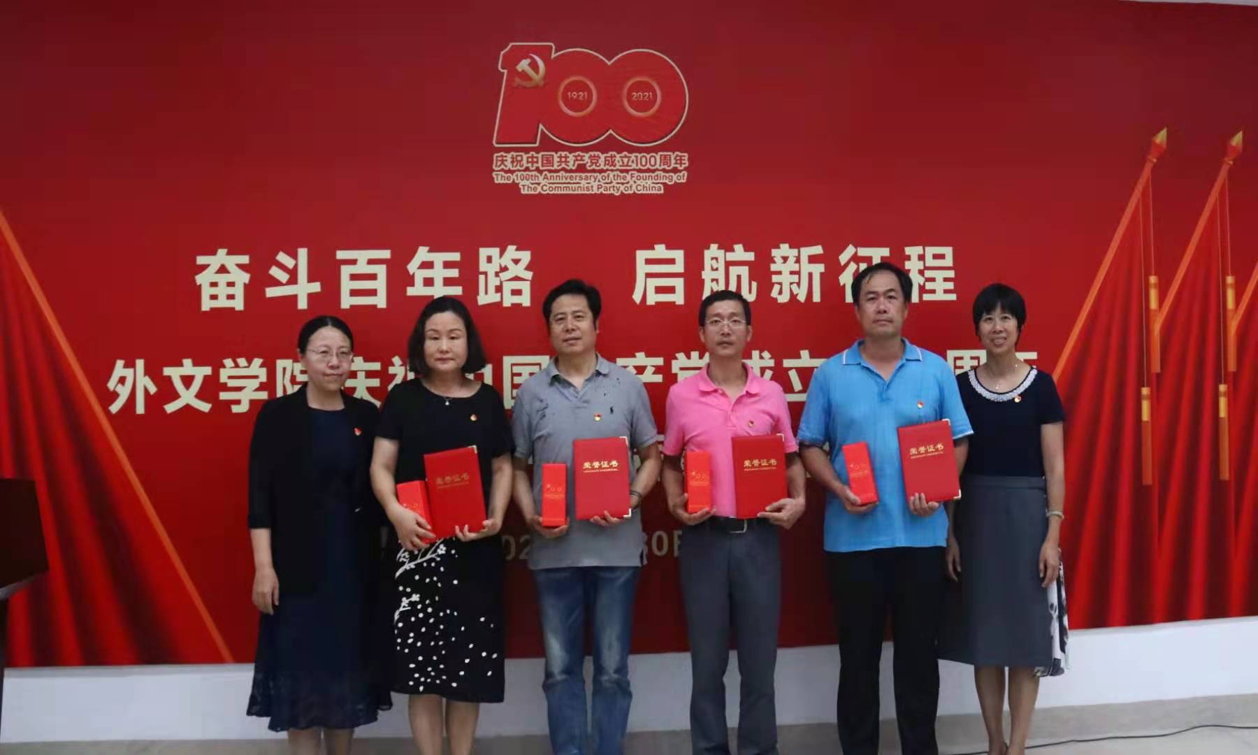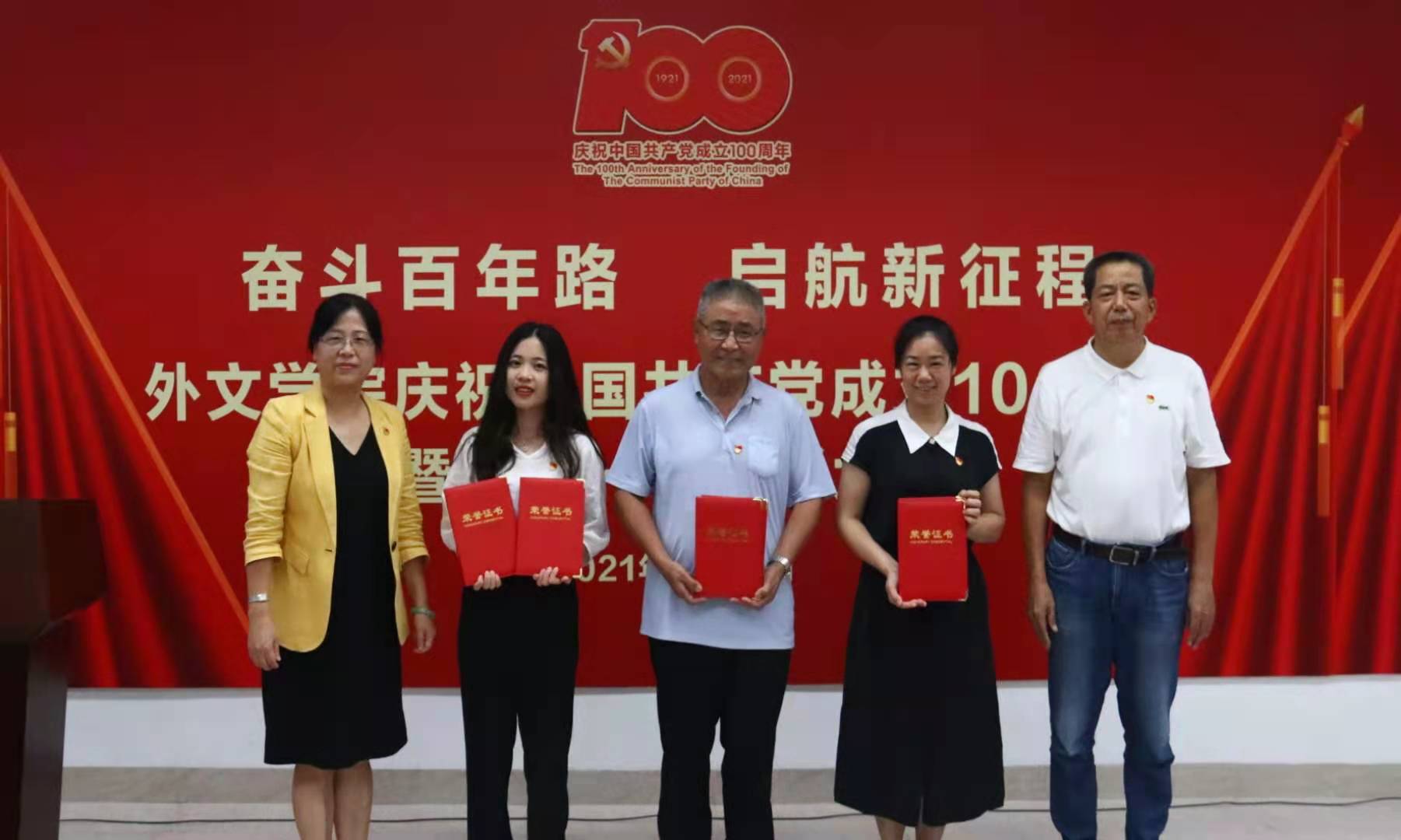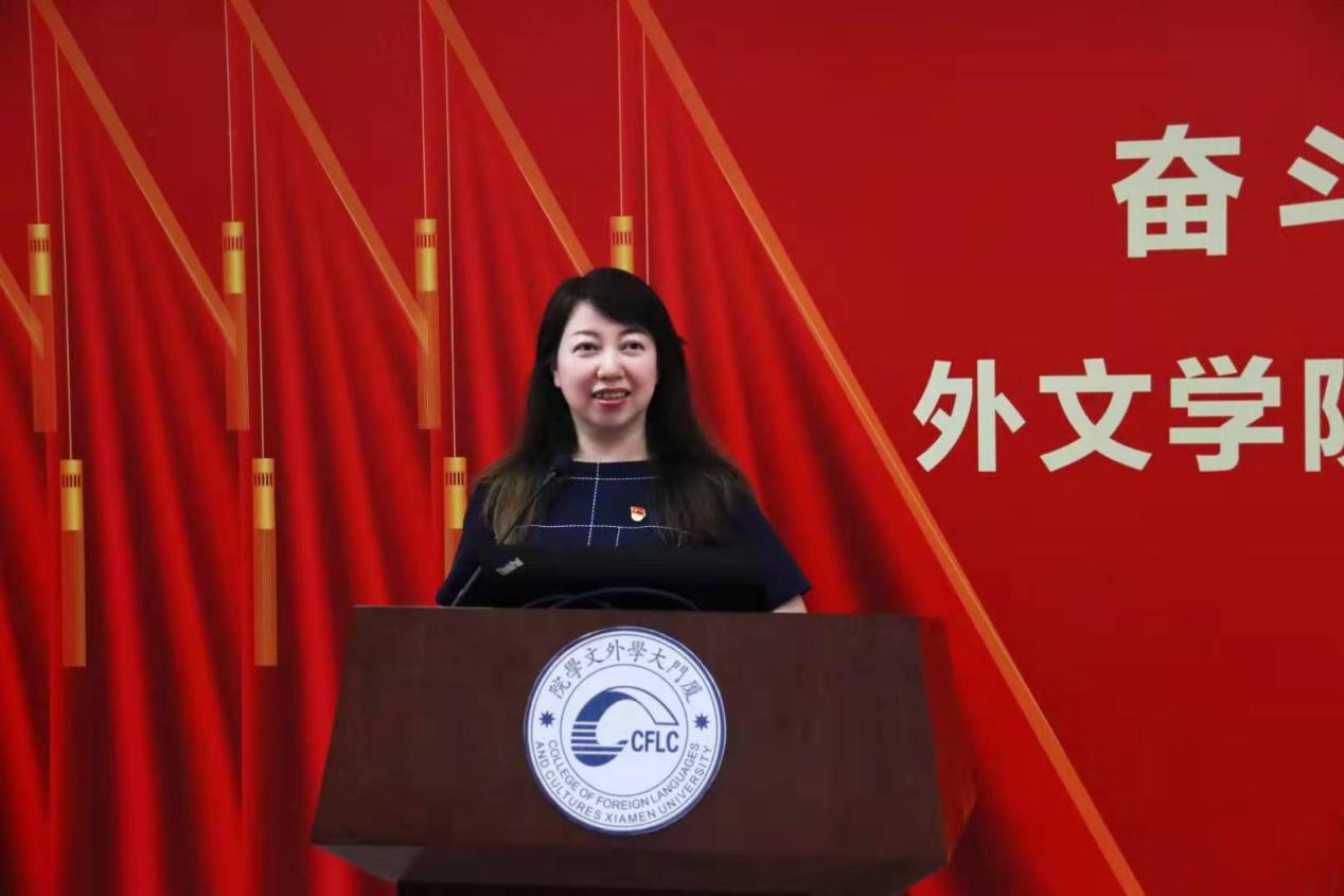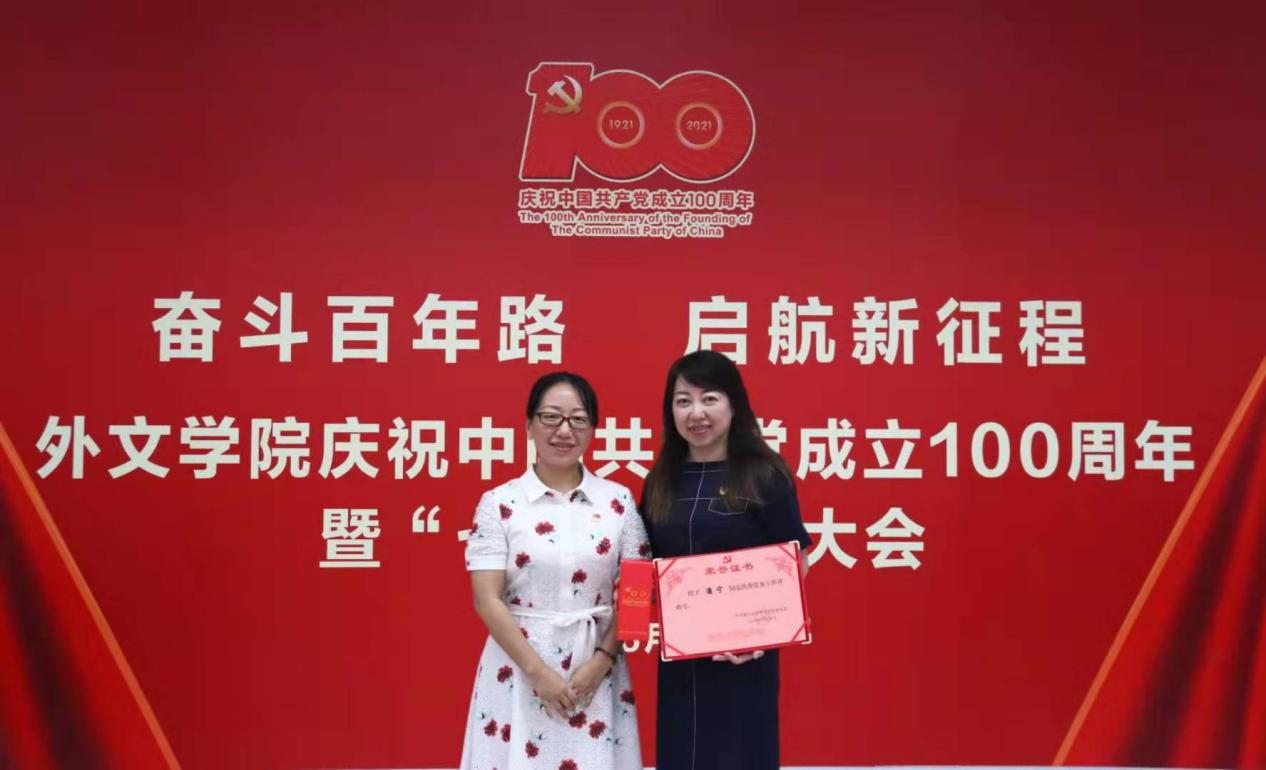 随后,沈丽秀副书记宣读了学院“七一”表彰决定。在建党百年的重要时刻,外文学院党委对过去一年来在争创一流学科、推进内涵建设、维护和谐稳定、服务师生员工、夯实基层组织方面所涌现出的先进党支部及优秀党支部书记、党务工作者、共产党员进行了表彰,引领号召全院各党支部和广大党员站在新百年的历史起点上,以受到表彰的先进集体和优秀个人为榜样,争做“四讲四有”合格党员,进一步发挥党支部“七个有力”,为加快学校“双一流”建设作出新的更大贡献。本次共有3个党支部,31名个人受到学院表彰。颁奖仪式后,受到校、院表彰的师生党员代表王力平、陈雅燕、潘宁结合自身学习和工作实际,用朴实的话语、生动的事例,表达了对党的赤诚之心和为学院各项事业发展再立新功的决心。