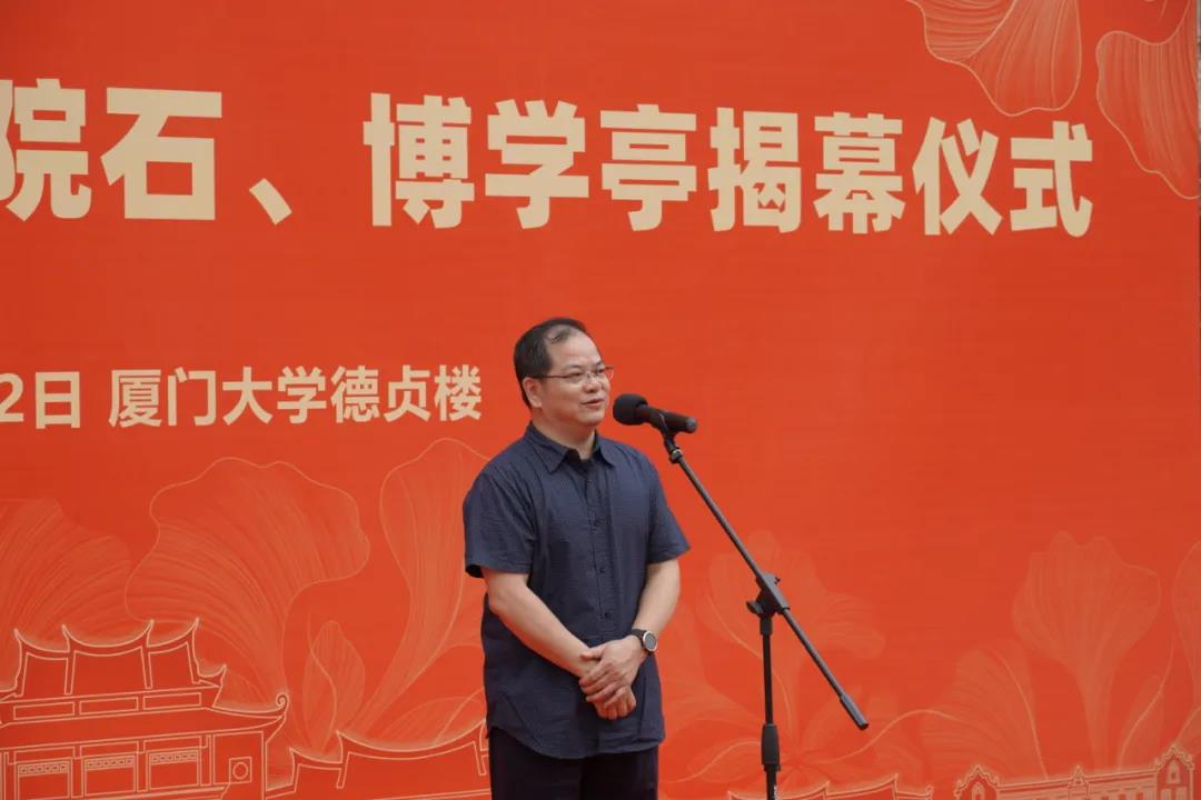鹭江深且长,南强绽芳华。4月2日上午,厦门大学外文学院院石、博学亭揭幕仪式在德贞楼前隆重举行。厦门大学校友总会副理事长詹心丽,校资产处副处长崔庆炜,校基层党建工作联络员黄定基,外文学院党委书记陈志伟、院长陈菁、原院长杨信彰,厦门大学外文学院全球院友会会长、德屹资本董事长、77级院友朱德贞,84级、85级返校院友,学院党政领导及在校生代表出席了仪式,共襄盛举。