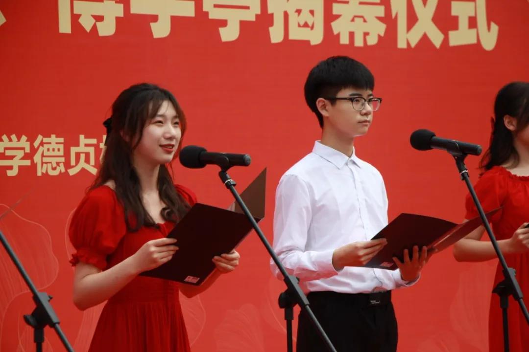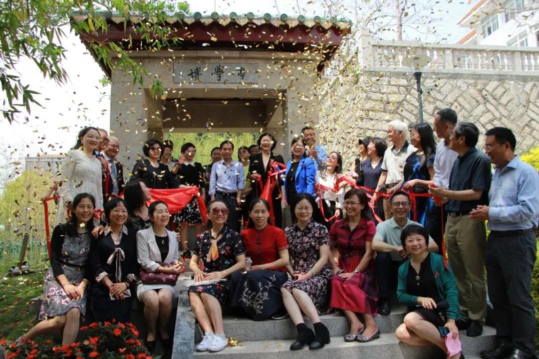 院石揭幕后,各位领导嘉宾移步凤凰台,为“博学亭”郑重揭幕。85级院友捐资筹建了立于凤凰台侧的博学亭,并设立“博学基金”。“博学”二字意味深长,既表达了对当年外文人学习生活的博学楼的难忘之情,也蕴涵了对外文学子脚踏实地的谆谆教诲,饱含了对母院师生“博学多才”的深切期待。