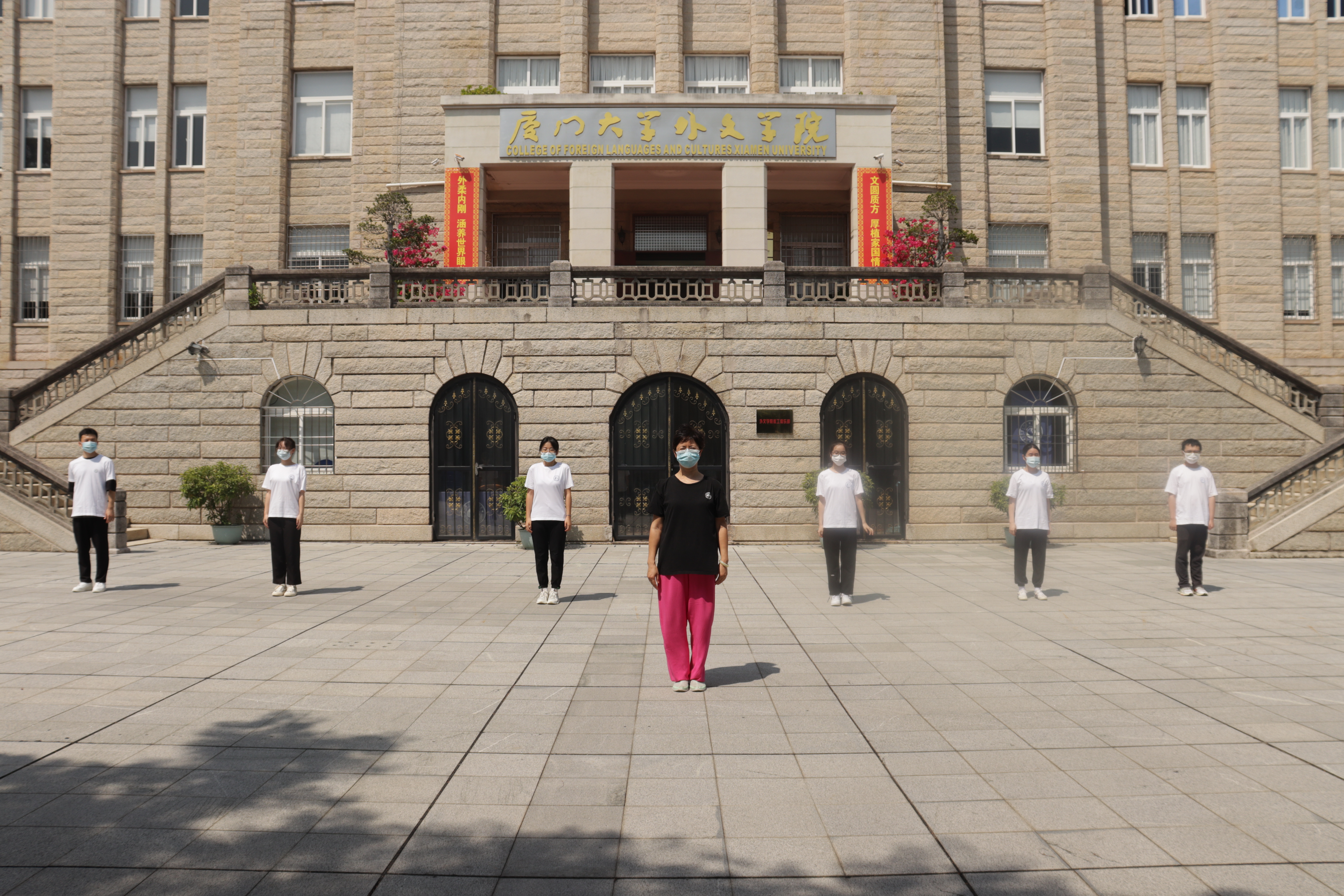国庆节将至,为充分发挥体育锻炼在抗击疫情中的重要作用,丰富疫情期间师生节日活动,在严格做好疫情防控工作的前提下,外文学院师生于9月29日在外文学院凤凰台上顺利举办了“战‘疫’强体魄 奋进新百年”厦门大学外文学院师生迎国庆同练“八段锦”抗疫活动。此外我院师生还在家中和宿舍园区练习八段锦。