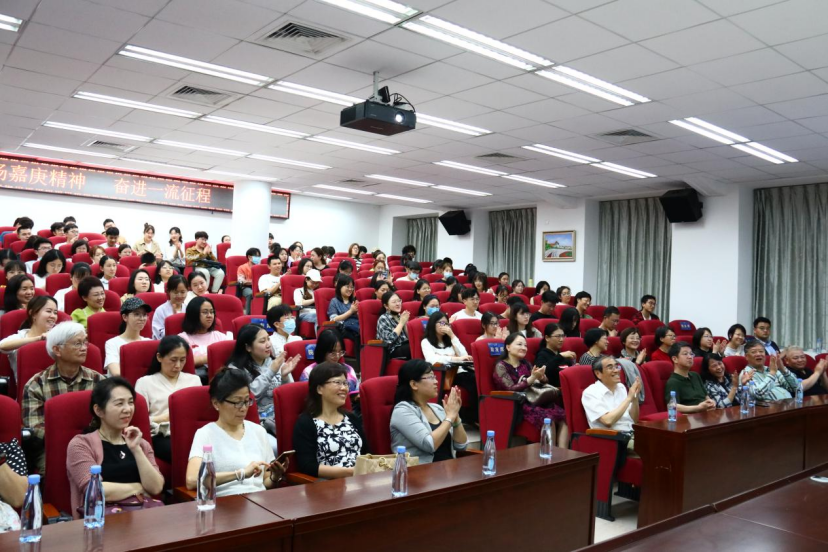 在余元堂先生分享结束后,中科院院士陆建德教授被邀请上讲台,对此次讲座活动做了一个补充,再一次深化了听众们对此次讲座主题的认识。在沙龙结尾,外文学院党委书记陈志伟书记向陆建德院士送上礼物表示感谢,学生代表为余元堂先生献上鲜花,表达对余元堂先生的敬仰。