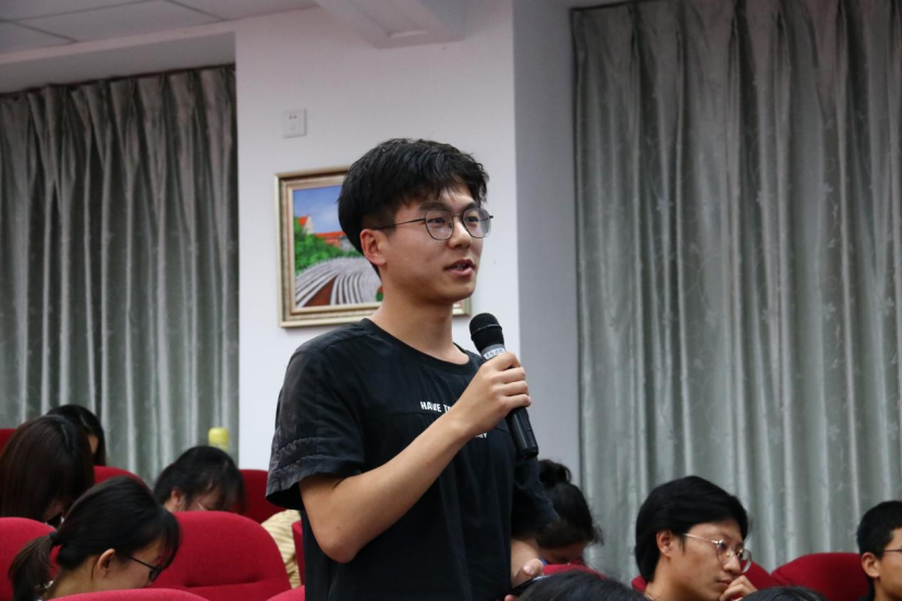 余元堂先生的分享结束后,在场的嘉宾及师生们踊跃发言,针对自身感兴趣的话题向余元堂先生提问、讨论。有返校院友从余元堂先生的讲座中提取了“连接”作为主题,提出了IT行业标准与语言学习之间的关系问题,还有同学针对余元堂先生通过《威尼斯商人》展现的金融概念提出了道德伦理与金融关系的问题。余元堂先生对每一个问题都做出了详尽且深刻的回答,让在场的嘉宾及师生们都受益匪浅。