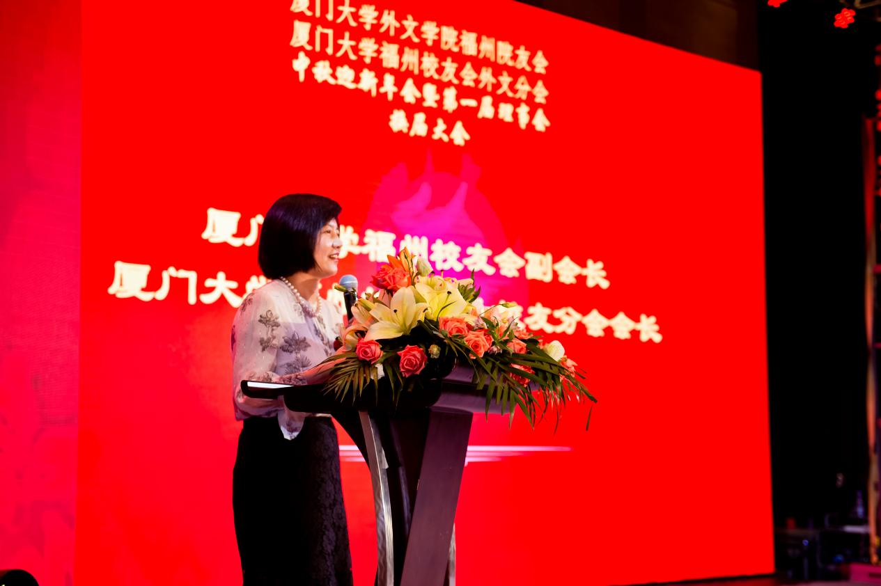 随后,厦大福州校友会副会长兼女校友分会会长林冰上台致辞。受在外出差的厦大福州校友会领导委托,她代表福州校友会祝贺院友会成功换届,祝愿院友会越办越好。