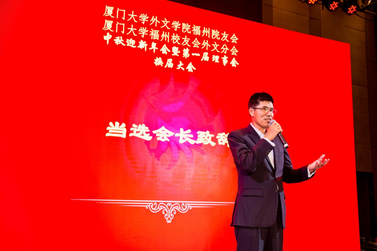 经过选举,陈纪钰连任院友会会长,陈飞任监事会监事长。在现场嘉宾和院友的掌声和祝福声中,陈纪钰会长上台致辞。他对现场嘉宾和福州校友会领导、母院领导以及广大院友表示感谢,同时表示,将不负广大院友的重托,把院友会的事业越做越大,将院友会打造成院友之家,打造成广大在榕厦大外文院友的精神家园。