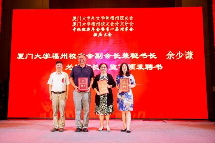 随后是隆重的院友会换届大会。该环节由厦门大学福州校友会副会长兼秘书长余少谦主持。