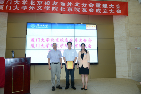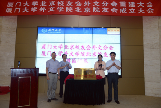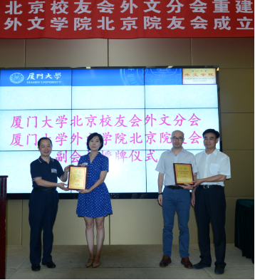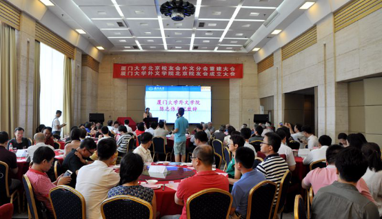 7月9日,在厦门大学校友总会、厦门大学外文学院和厦门大学北京校友会的大力支持下,厦门大学外文学院北京院友会成立大会暨厦门大学北京校友会外文分会重建大会在北京市隆重举行。 当天应邀出席大会的嘉宾有外文学院党委书记陈志伟、校友总会副秘书长陈伟平、厦门大学北京校友会监事长赖观荣、厦门大学北京校友会副会长兼秘书长郭振忠、厦门大学北京校友会会计分会会长孙航、知名校友龚哓峰,郑文元,曾加伟,邓德雄、厦门大学北京校友会副会长兼青年工委主任程旭宇,以及来自澳洲、西班牙、哈萨克斯坦、北京等地院友代表120余名校友。大会由厦门大学北京校友会副会长兼秘书长郭振忠主持。  郭振忠主持大会