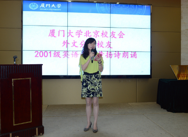 副秘书长授牌仪式 厦门大学外文北京院友会兼北京校友会外文分会名誉会长张锦辉, 59级外文院友易如成,来自澳大利亚的79级院友安琪,厦门大学外文北京院友会兼北京校友会外文分会副会长王维东, 92级外文院友张建欣分别代表老校友和中青年校友发言,表达了校友们一直以来对母校的眷恋和对北京校友会外文分会重建的热切期盼,期待今后在校友平台上能够更加密切地与母校和校友们交流沟通。易如成用英语发表了慷慨激昂的演讲, 01级外文院友黄扬现场表演诗朗诵厦大版《南山南》,博得了在场校友们的阵阵掌声。