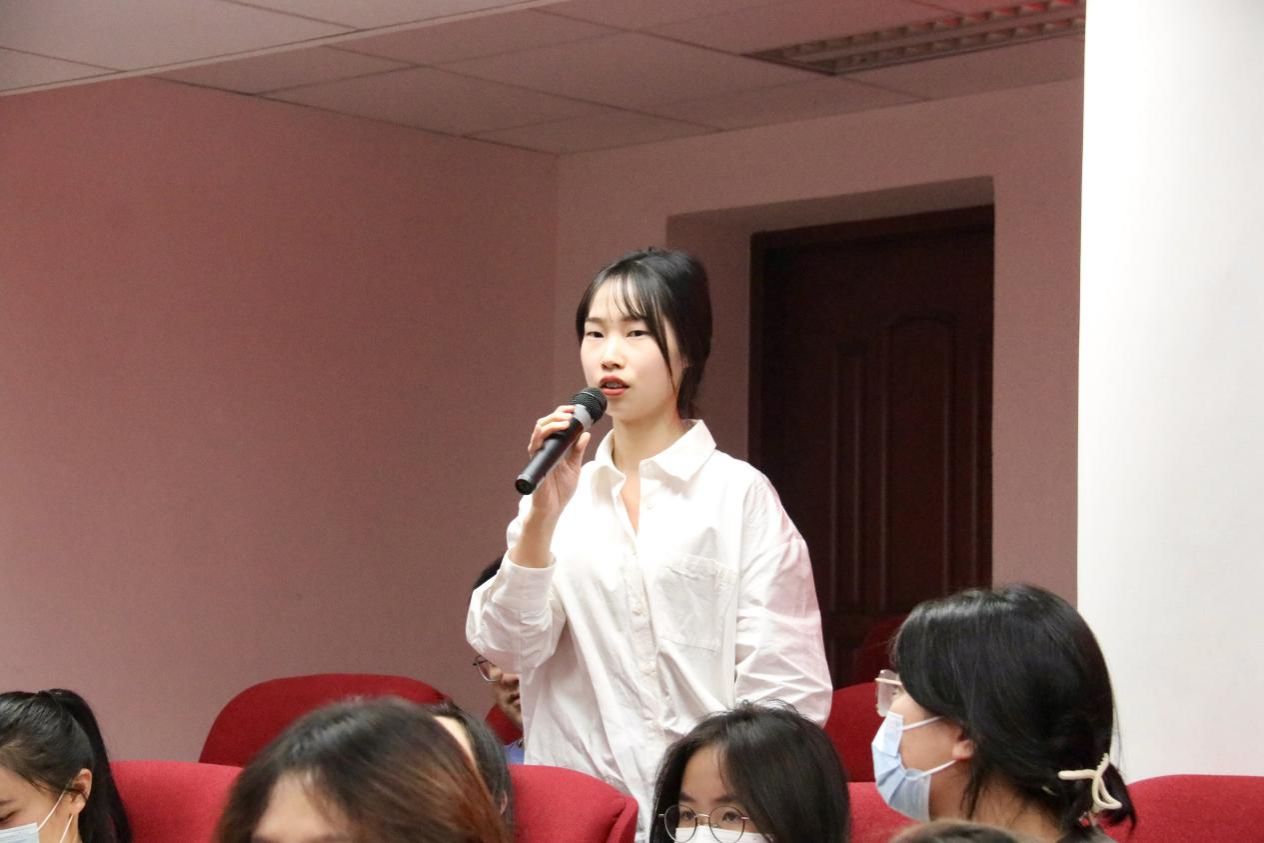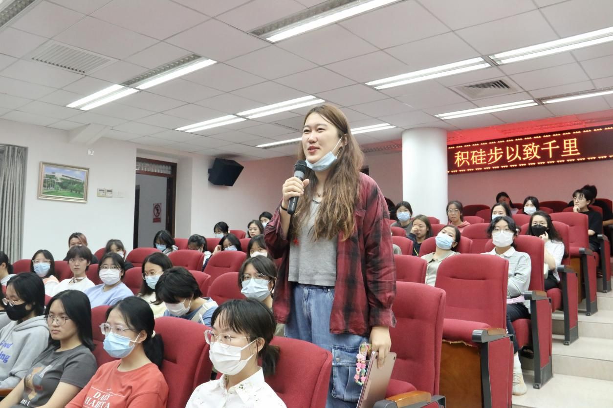 朱德贞学姐首先回忆了自己的大学生活,她强调,所学专业实质上依托于同一个方法论,不局限于单一学科、敢于试错、努力提高综合素质,是未来在职场上脱颖而出的关键。大学期间应充分利用学校的宝贵资源,踊跃参加活动,培养组织、沟通、表现能力,逐步提升自己的竞争力。同时,时代在快速发展,大学生的就业观要因时而变。她完全不认同“学语言没出路”的错误看法,鼓励同学们保持积极向上的心态,将语言看作一个恒久的技能,不断为自己赋能,持之以恒,方能成大器。