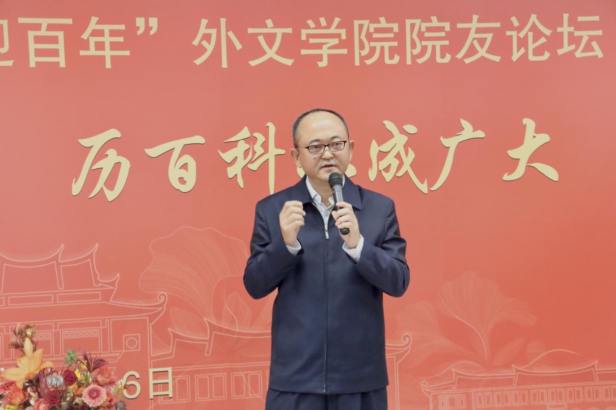 2023年外文学科即将迎来百年佳辰,为弘扬外文学子自强不息、奋发有为的优良传统,培育更多有理想、敢担当、能吃苦、肯奋斗的新时代好青年,11月16日下午,外文学院在德贞楼112报告厅举办“凝心聚力迎百年”首场院友论坛,专程邀请到77级院友朱德贞、80级院友李思明作为主讲人。外文学院党委书记徐琪主持论坛,党委副书记沈丽秀,厦门大学内蒙古校友会会长、外文94级院友于树军等出席活动。