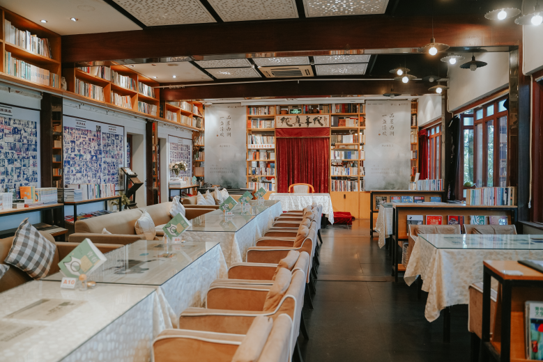 2009年,54岁的锦绣学姐将书吧搬上了西湖宝石山上,书吧临西湖水,枕宝石山,依保俶塔。站在书吧窗前,西湖美景便映入眼帘,而这山顶的一簇暖光,亦照亮了读书人的来路。在这里,常有茅盾文学奖获得者的身影,开展读书会、讲座,场场人气爆棚。这里已经成为杭州最具代表性的文化活动场所之一,被称为“杭州的文化客厅”和“宝石山上的布达拉”。