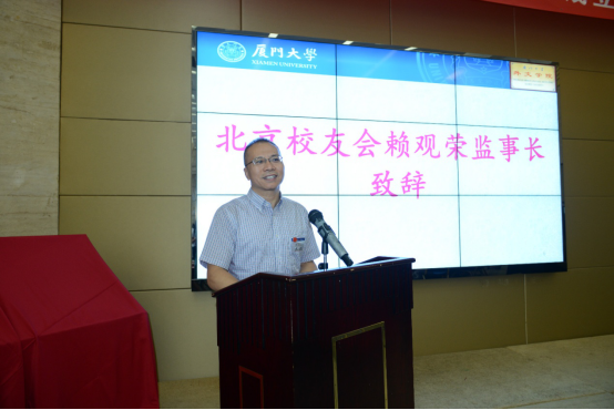北京校友会监事长赖观荣致辞,代表北京校友会对外文分会的重建以及外文学院北京院友会的成立表示热烈祝贺,鼓励外文分会的校友们借助这一平台展开更多的交流,为母校做出更多贡献。并对后续北京校友与母院厦门大学外文学院两地校友交流寄予厚望。