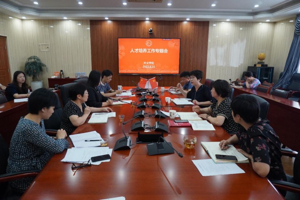 6月25日,外文学院召开人才培养专题会,重点聚焦本科教育教学工作、就业工作、学生实习实训基地建设等工作,全面查找短板弱项,深入交流研讨,广泛汇智聚力,谋求改革创新,准确识变、科学应变、主动求变。学院党政班子成员、各系部负责人、科级干部、辅导员等参加会议。会议由陈菁院长主持。