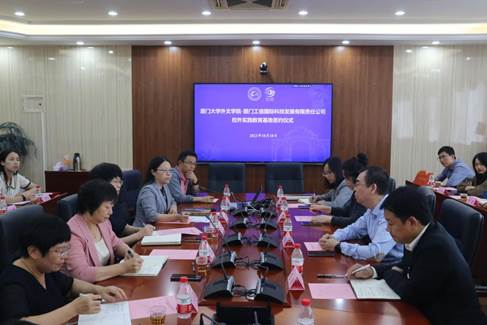 陈菁院长代表学院对工信国际经济技术合作中心、厦门工信国际科技发展有限责任公司各位嘉宾的到来表示热烈的欢迎,对双方开展深度合作表示期待。她简要介绍了外文学院的发展情况与办学成就,指出厦大历来注重高质量国际化人才培养,外文学院在此基础上坚持发扬学科优势,明确“服务区域发展和国家战略需求”的学科定位,用专业知识架起中国与世界的沟通桥梁,为深化国际传播作出积极贡献。并充分肯定了双方签署校外实践教育基地协议的重要意义,希望能够尽快开展院企合作,并就开展过程中的实际问题进行研讨。
