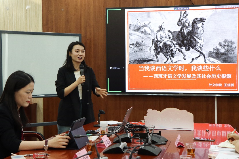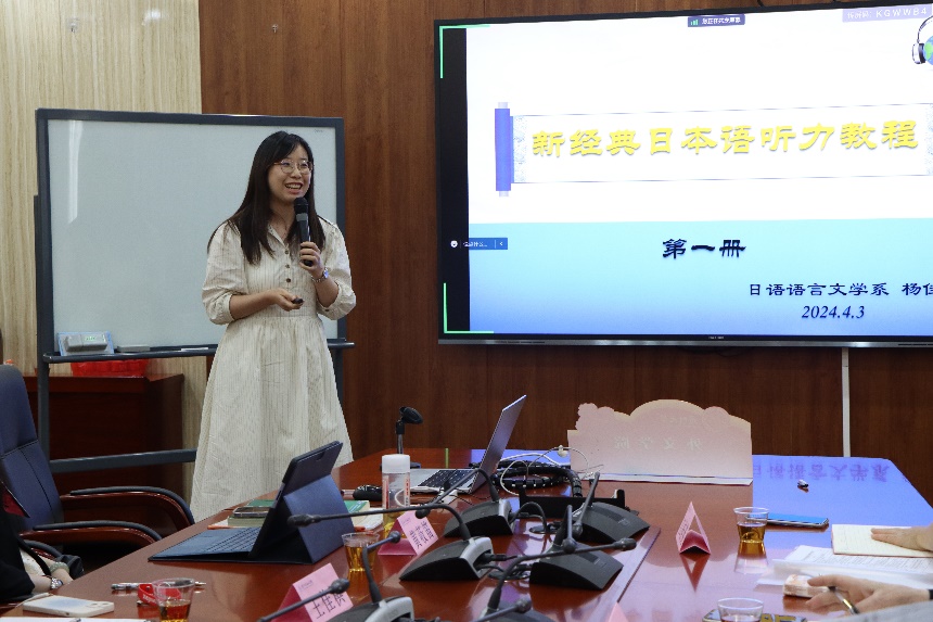黄荍笛、王佳祺、杨佳嘉三位青年教师相继进行展示,分别围绕“《童年的许诺》选段赏析”“当我谈西语文学时,我谈些什么——西班牙语文学发展及其社会历史根源”“日语视听说”进行了二十分钟的精彩片段教学。三位教师充分展现了个人独特的教学风格以及对不同语种课程、不同语言文化的深刻理解。