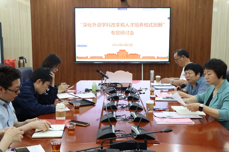 随后,学院举办了“推进外语课程思政高质量建设,加快培养高素质外语人才”专题研讨会。各专业负责人分别围绕“如何进一步推进《理解当代中国》多语种教材”“加快培养高素质复合型外语人才”等议题分享了本专业的做法。徐琪书记指出,新时代外语教育面临着新形势新要求,要深化“三进”工作,落实立德树人,持续推进外语教育改革,加快新文科建设,更好地服务新质生产力发展,更好地服务国家战略需求。