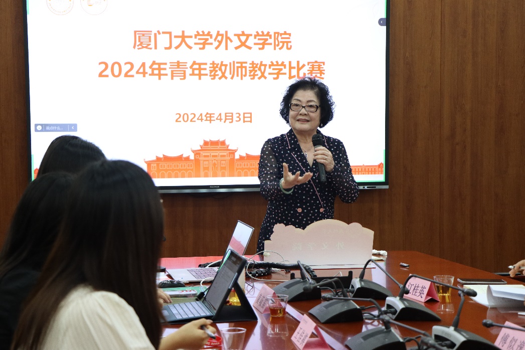 本科教学是大学发展的重要推力,为夯实本科教学基础,提高教学质量,外文学院于4月3日在德贞楼515会议室举办2024年青年教师教学比赛,教师发展中心教学指导专家、外文学院原副院长傅似逸教授,外文学院党委书记徐琪教授、副院长江桂英教授以及各系部主任莅临比赛现场。