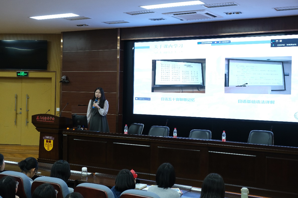 2021级日语口译专业硕士生姚书勤主要介绍了她在外文学院求学六载的经历与体会。作为厦门外国语学校的毕业生,她从自己亲身经历出发,向学弟学妹们全方位展现了厦外人在外文学院的发展轨迹,并鼓励学弟学妹们报名厦门大学外文学院,创造更多属于厦外学子的可能性。