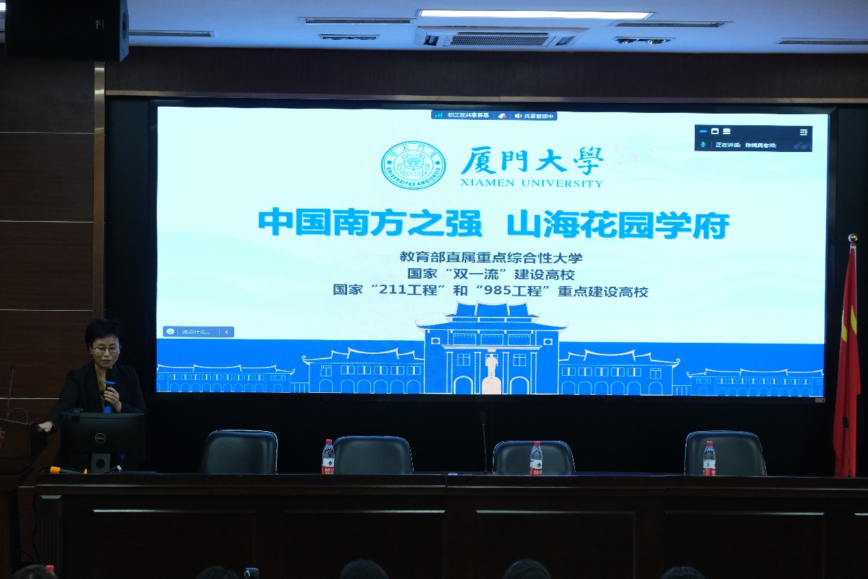 厦门外国语学校陈锦英老师主持宣讲活动。她表示,十分开心能够再次看到母院的各位老师到访,也十分感激厦门大学外文学院对她的培养,希望此次宣讲会能进一步深化学院和学校的联系。