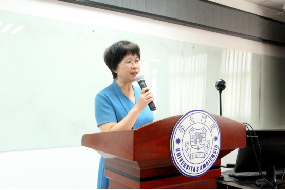 首先,陈菁院长致开幕词。她代表学院对全体同学的到来表示热烈欢迎和衷心祝贺,一是感谢同学们选择翻译专业,主动为实现不同文化沟通交流,保护文明多样性,推进国际传播能力建设贡献自身价值,二是感谢同学们勇立潮头,选择了在全国翻译专业中发挥着示范引领作用的厦门大学外文学院。接着她回顾了厦门大学翻译学科的筚路蓝缕的历程。翻译学科始终砥砺前行,勇于探索,硕果飘香,努力为推动中国文化对外传播奉献力量。她指出,与全日制硕士相比,非全日制同学求学动机更强,面临的家庭社会压力也更大。学院对此高度重视,从课程规划到师资配备、从课程学习到课后生活都精心安排。她真心祝福各位同学能够在厦门大学外文学院度过愉快的学习时光,学有所成。