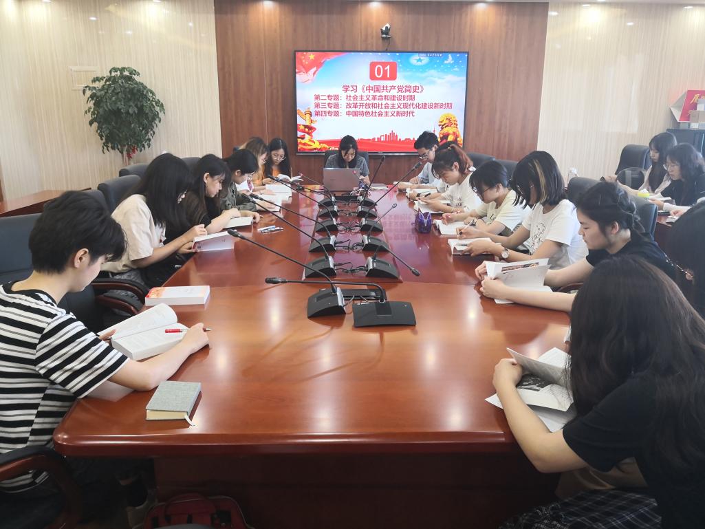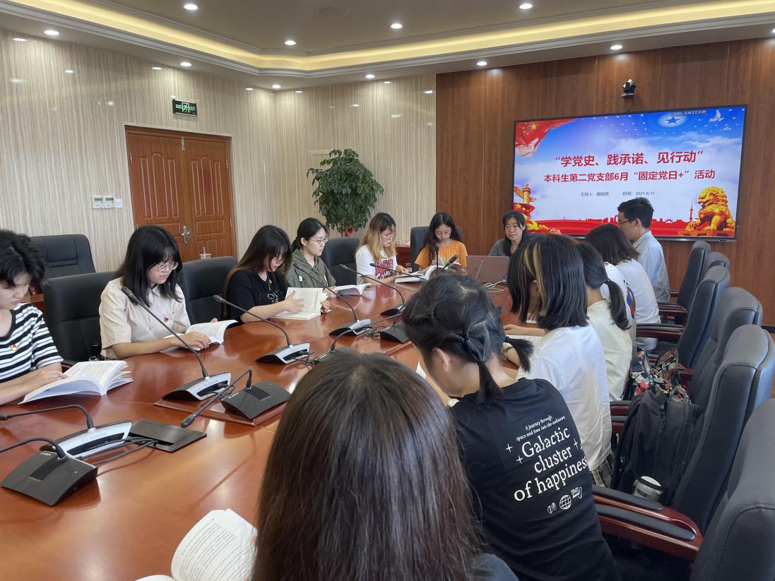 为响应党中央号召,进一步加强党史学习教育,增强支部凝聚力,外文学院本科生第二党支部于6月11日中午在德贞楼515召开了“固定党日+”活动。活动分为两个阶段,第一阶段,党员们共同学习了《中国共产党简史》第五至十章的内容,第二阶段,2017级党员分享了英语专业四级备考经验。活动由党支部书记戴晓燕同志主持。
