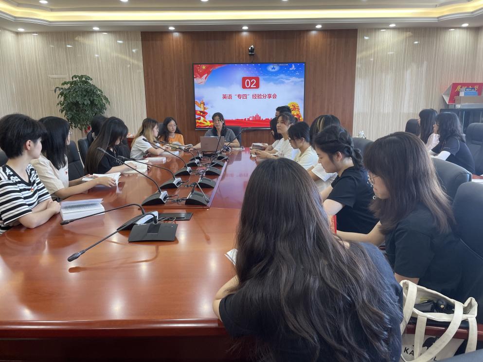 同志们分享了专四备考应试经验,向即将迎来专四考试的2018级和2019级的同志们提供了宝贵的经验。王晓文同志指出,在专四考试倒计时一周之际,可以将自己曾经做过的错题做系统化的梳理,并归纳总结出常出现的错因,给出相应的预案。一方面可以进行复习,另一方面可以加强记忆,提醒自己在考试时不犯类似错误,避免丢不必要的分。
