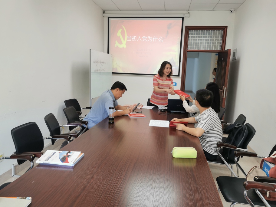 随后,在王岚同志的带领下,大家围绕主题,认真回顾了各自入党时的原因与情形。付勇同志从家庭影响、广播影视影响、力争先进之心三个方面讲述了自己的入党初衷;郭颖同志回忆了自小受到军人家庭氛围的教育和熏陶;廖荣发同志回忆了当初递交入党申请时,对党的认识和向往;王岚同志回忆了大学入党时的情景,向大家讲述外公对自己讲的“那我们以后就是同志了”这句话背后的故事,缅怀了给自己前进的动力、教导自己坚守初心的亲人。