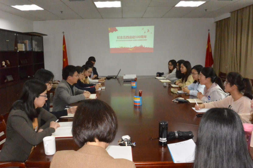 2019年5月8日下午,2018级硕士研究生第二党支部利用“固定党日+”的活动的开展时间于颂恩楼820会议室开展了与国际合作与交流处与台港澳事务办公室党支部的第一次共建活动。在共建党支部书记张胜强老师的带领下,支部党员共同学习了习近平总书记在纪念五四运动100周年大会上的重要讲话精神。