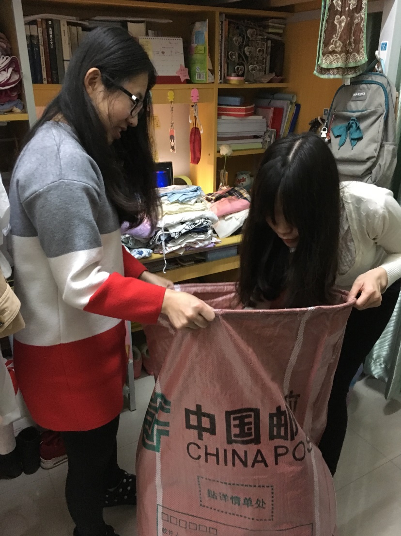 3月下旬以来,按照立项方案,在前期宣传发动的基础上,支部成员按照党小组的人员划分形成几个工作组,陆续走访了2015级全体研究生宿舍,本着一切自愿的原则,征集大家早已准备好的捐赠物品,包括了旧衣物、文具、适合中小学生的课外书籍等,当晚,支部成员收获颇丰,本次活动也受到了同学们的大力支持。