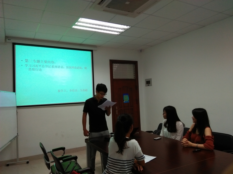 2016年9月19日上午,外文学院2015级研究生第三党支部在南光三209教室开展了“两学一做”学习教育第三专题学习会。本次专题学习研讨主要以学习习近平总书记系列重要讲话,加强理论武装,统一思想行动为主题。党支部书记王霞同志主持了本次学习活动,组织委员吴恭超负责记录此次活动。在校的支部党员全部出席。