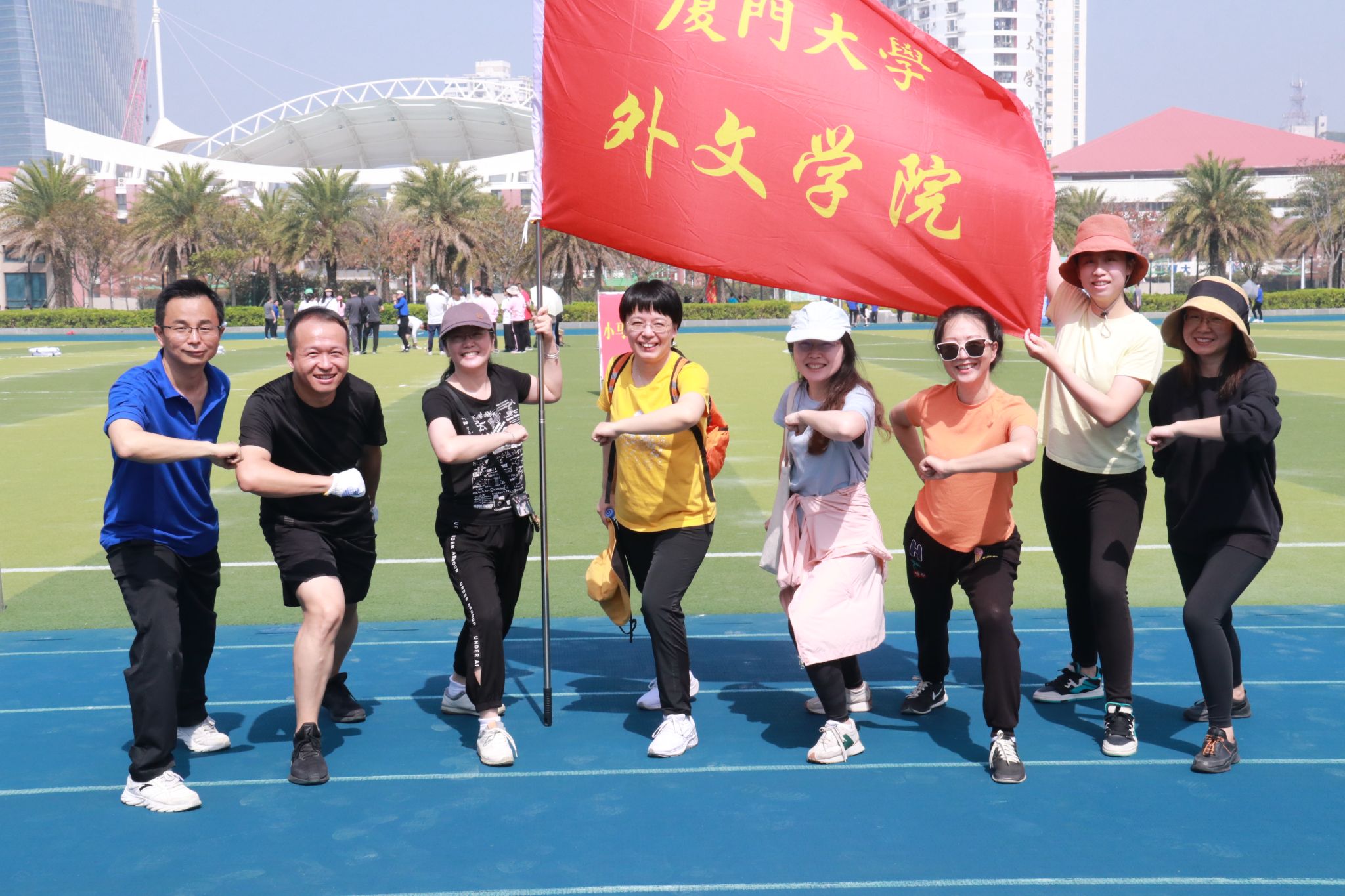 4月16日,“礼赞二十大 建功新时代”厦门大学教职工趣味运动会在思明校区演武田径场成功举办。在喜迎厦门大学外文学科创建百年之际,外文学院代表队以昂扬的斗志、饱满的精神参加了本次运动会。赛前,院工会、妇委会全体成员在辛志英副院长和工会主席潘宁老师的带领下,积极组织参赛队员练习,我院教师在筹备各项院庆活动之余挤出宝贵时间,参加了多次集体训练,展现出了外文学院朝气蓬勃、积极向上的精神风貌。
