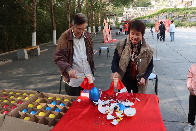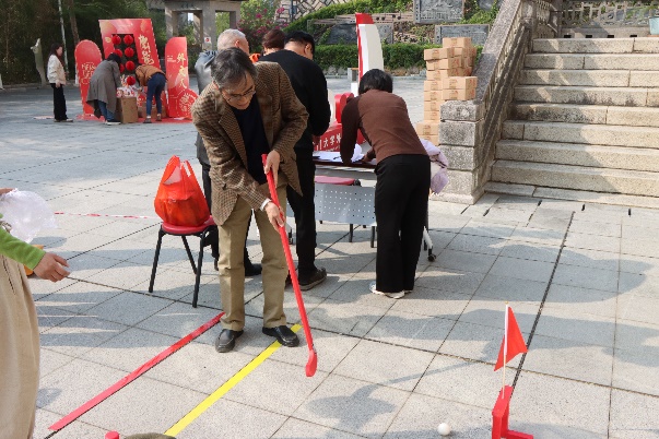 活动现场热闹非凡,一片欢乐祥和的气息,多种游戏吸引了学院党政领导、离退休教师代表、在职教职工,乃至“外二代”“外三代”的积极参与。游戏环节精彩纷呈,不仅考验智慧与勇气,更融入了中华传统文化元素。“彩蛋狂欢”让人惊喜连连,“喜气临门”挑战手眼配合,“金锣开泰”考验方向感,“五福纳祥”则让人们在游戏中领略书法的魅力。