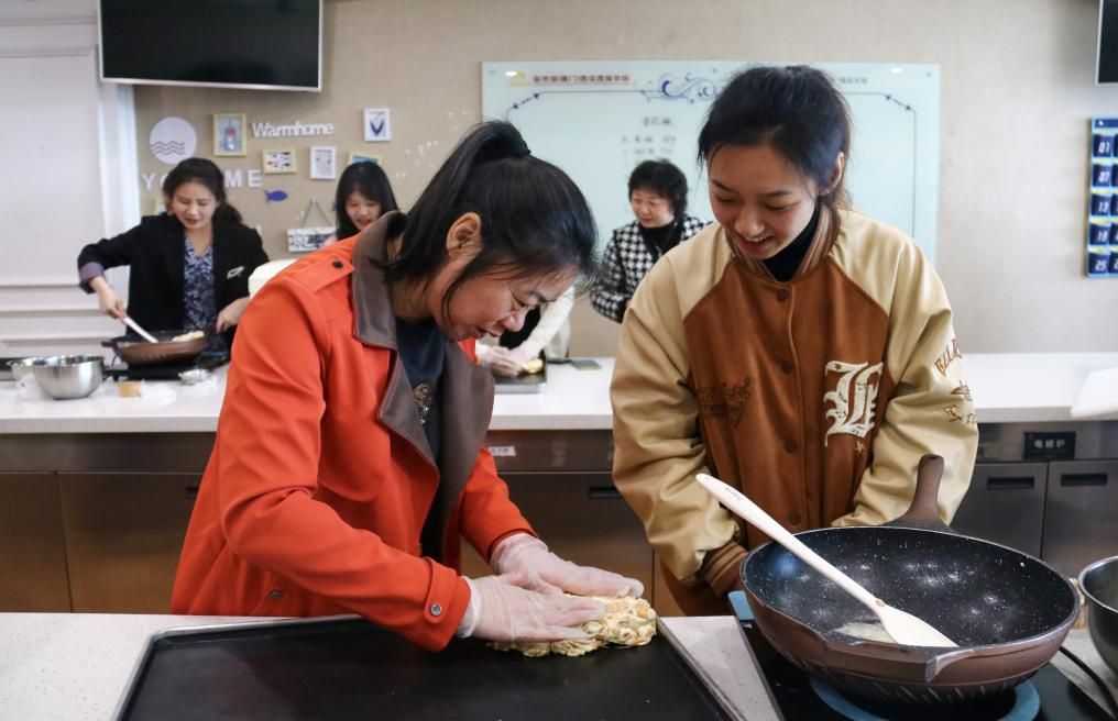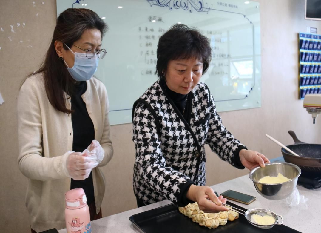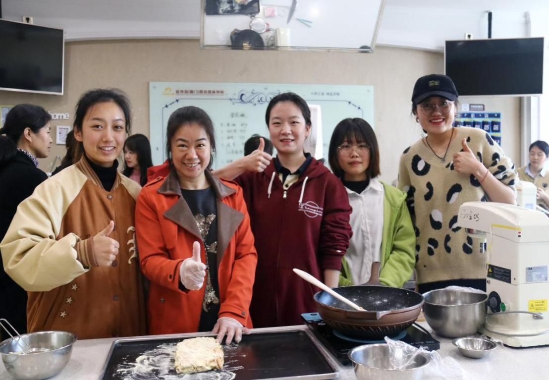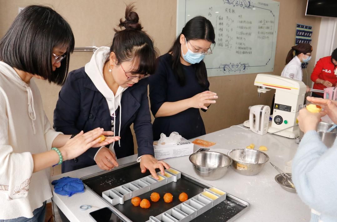 凤梨酥是闽台地区的特色甜点,因其酸甜可口而备受青睐。从选材、配比、混合、入模,到最后的烘烤、包装……制作过程看似复杂,却难不倒巧手的外院师生们。在专业西点师的指导下,大家认真聆听制作方法,全心投入体验过程,一阵忙碌过后,外皮酥脆、馅料香甜的地道闽台小吃凤梨酥大功告成。师生们交换着品尝各自的成果,教室里一片欢声笑语。
