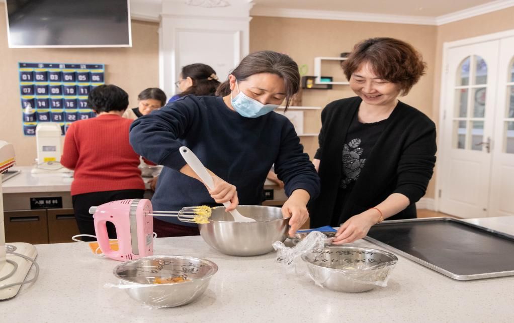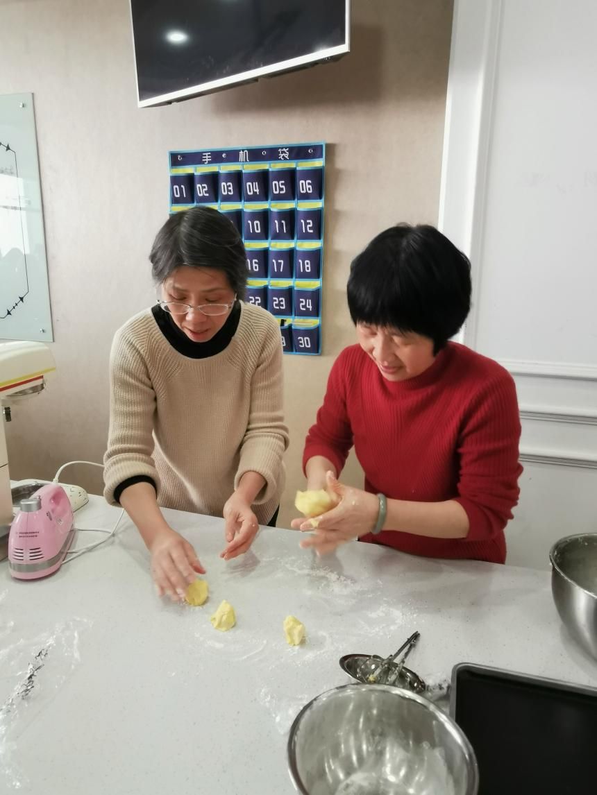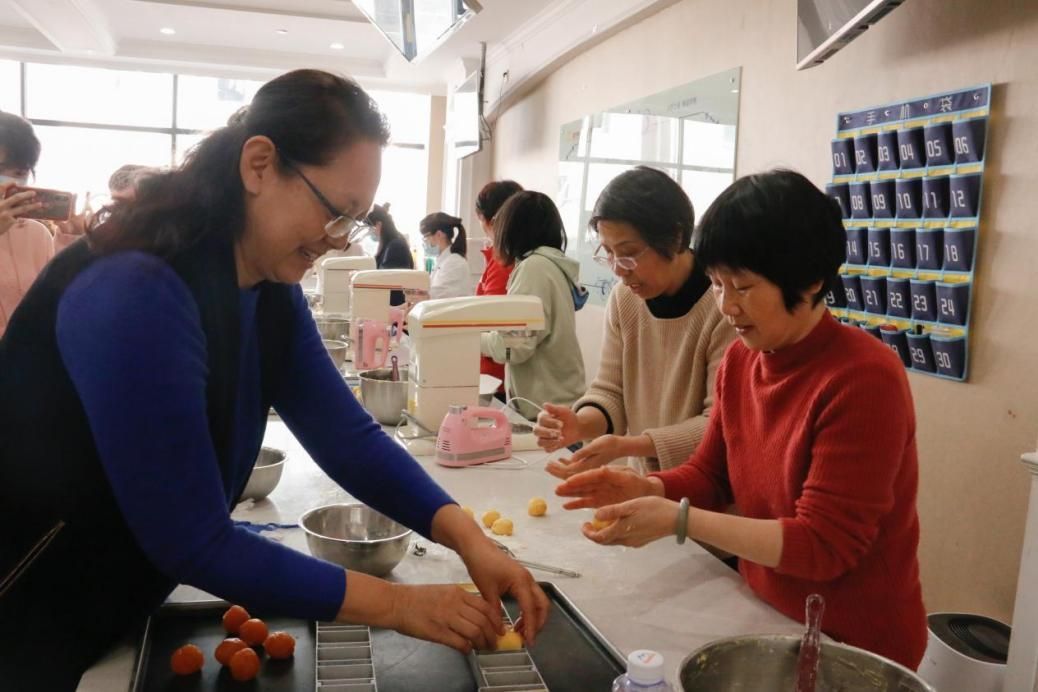 同样因风味独特而备受喜爱的还有雪花酥。师生们兴趣高涨,自行组队分工,配合默契、有条不紊。从熔糖、拌坚果到塑型、分切包装,每一步都做得细致无比,专注投入。最后,奶香充裕、口感丰富的“网红”甜点雪花酥出炉,装袋以后胜似卖品,大家脸上都洋溢着欣喜的笑容。