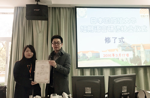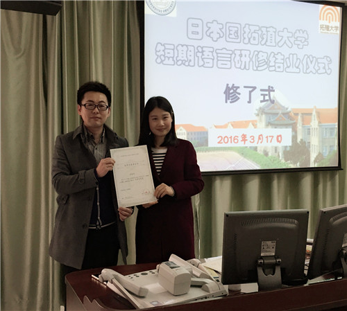 任星博士为拓殖大学学生大滨亚纱希颁发结业证书
